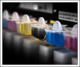 Potisky barvou – metodou tzv. řezané grafiky.
