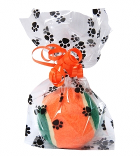 Vyrobeno z polypropylenu, Celofánový sáček s tlapkami je z průhledného celofánu na kterém jsou natištěné černé tlapičky. Pouze vložte dárek, zatočte a zavázejte stužkou. Jsou perfektní na psí pamlsky, sladkosti, oříšky nebo jakékoliv menší předměty.
