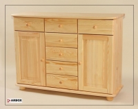 Dřevěná komoda 2+7 je vyrobena z kvalitního borovicového masivu. Konečná povrchová úprava je provedena bezbarvým lakem. Lak dřevo pokryje lesklou vrstvou, zakonzervuje ho a ochrání před vnějšími vlivy a opotřebením.