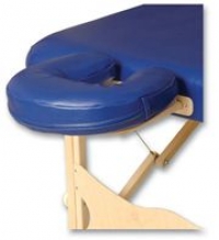 Dřevěná popděra hlavy s praktickým výřezem na obličej pro pohodlné ležení na břiše. Pomocí suchých zipů se na podpěru přidává čalouněný límec.