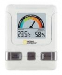 Digitální vnitřní teploměr s hydrometrem. Zobrazuje vnitřní teplotu v rozmezí: -50 °C do 70 °C (- 58 °F do 158 °F ), vnitřní relativní vlhkost ovzduší, na základě údajů o teplotě a vlhkosti zobrazí různé hodnoty ovzduší jako: moc suché ovzduší, komfortní zóna, moc vlhké ovzduší.