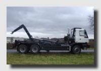 Hmotnost podvozku s nosičem včetně řidiče - 12765 kg, nosnost - 13235 kg.