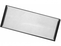 Plastová jmenovka s okénkem, součástí je papírová kartička a ochranná fólie, bez klipu, možnost uchycení na oděv pomocí klip-špendlíku.