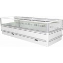 Chladící ostrov, bez zabudovaného agregátu, ventilované chlazení, výparník a nástřikový ventil, digitální termostat, automatické odmrazování, izolovaná skla, teplotní rozsah +2 až +8°C.