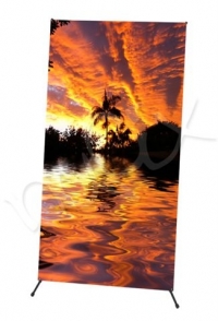 DISPLAYBANNER TYP XB01, XB02, ROZMĚRY: 60x160cm, 120x200 cm, Ideální pomocník pro výstavy, obchodní prezentace, konference, specialní promo akce, obchody. Lehká a skladná konstrukce banner displaye Vám zajistí snadný převoz, rychlé rozložení a jednoduché složení. ■Lehký banner systém pro interiérové použití. Čtyřramenný stojan tvaru písmene „X“ s úchyty na koncích ramen. Grafické médium má v rozích očka, kterými se ramenní úchyty provléknou. ■Banner je dodáván v ochranném přepravním pouzdře.