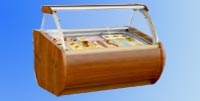 Prodejní obslužné vitríny kopečkové zmrzliny, elektronická regulace a zobrazení teploty chlazeného prostoru, samočinné odmrazování, výběr povrchových úprav pro interiérové řešení.
