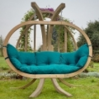 Křeslo je zavěšeno na dvou dřevěných nosnicích.