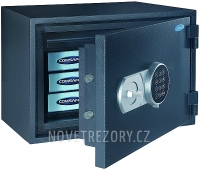 Testovaný a certifikovaný elektronický sejf s požární odolností LFS 60 P podle EN 15659 a ochranou proti vloupání. Při vysoké teplotě ochrání vaše cennosti a dokumenty po dobu 60 minut. Vnitřní teplota nepřesáhne 170 °C. V horní části sejfu je malá schránka.
