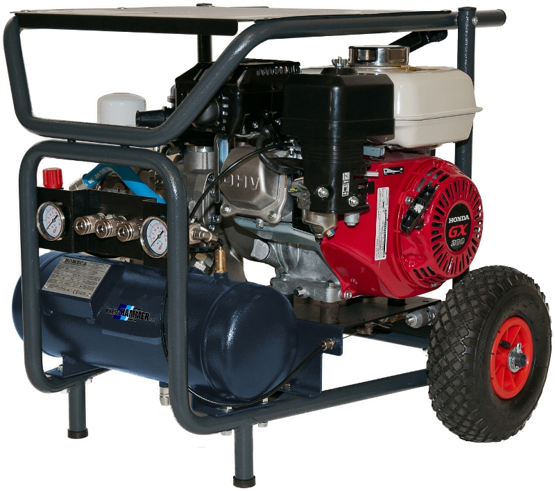 Nabízíme unikátní spojení moderního šroubového kompresoru PRESS-HAMMER a benzinového motoru Honda GX 200. Malý a tichý šroubový kompresor 3,5 kW KPM 3,5 patří svou moderní koncepcí mezi špičkové výrobky. Při výrobě využíváme výhradně systém „Ekompact“ to znamená nejkompaktnější kompresorový systém vyráběný v oblasti stlačeného vzduchu. Tento kompresor lze díky benzínovému motoru Honda použít na staveništi, kde není dostupný elektrický proud. Kompresor je vhodný pro montážní a stavební firmy, hasiče a záchranné jednotky.