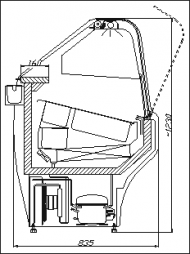 Konzervátor zmrzliny na GN se zabudovaným agregátem a ventilovaným chlazením. Výstavní plocha nerez, osvětlení, ofoukávání předního skla, opláštění standardně bílá prášková barva.
