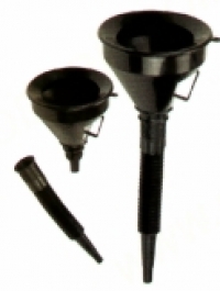 Kuželovitá nádoba s protáhlou trubicí k nalévání kapalin, obsahuje sítko zabraňující průtok nečistot.
