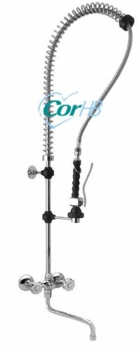 Model se směšovací nástěnnou baterií ovládanou kohouty pro studenou a teplou vodu a napouštěcím ramínkem z baterie.