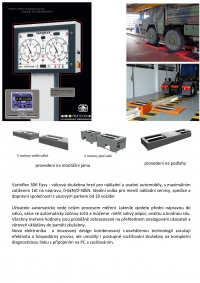 Válcová zkušebna brzd s možností rozšíření na kompletní diagnostickou linku, automatický rozběh s nastavitelným časovým posunem, automatika opakovaného rozběhu, ochrana proti zablokování, vyhodnocení naměřených hodnot včetně grafů.