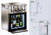 Nabízíme chlazenou vitrínu na 12 lahví vína. Chladič na víno s termostatem 4-18 st. C, tlačení dusíkem. Možnost osvícení vnitřku ZAP/VYP, 4 naražeče již v ceně. Možnost rozlévání i značkových vín po sklenicích.
