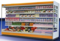 Přístěnná chladící vitrína pro prodej masa, uzenin, mléčných produktů, ovoce a zeleniny.