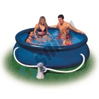 U bazénu stačí pouze nafouknout horní límec a stoupající sloup vody bazén sám postaví.