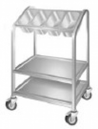 Nabízíme pojízdné provedení příborníku, který má dvě prolisovaná plata. K pojezdu slouží otočná kola průměr 75 mm, z toho dvě jsou brzděná.